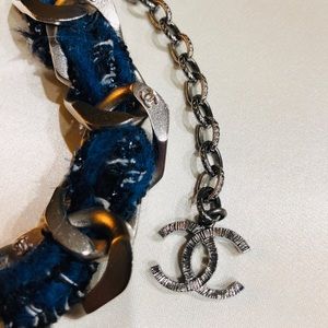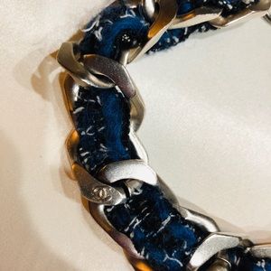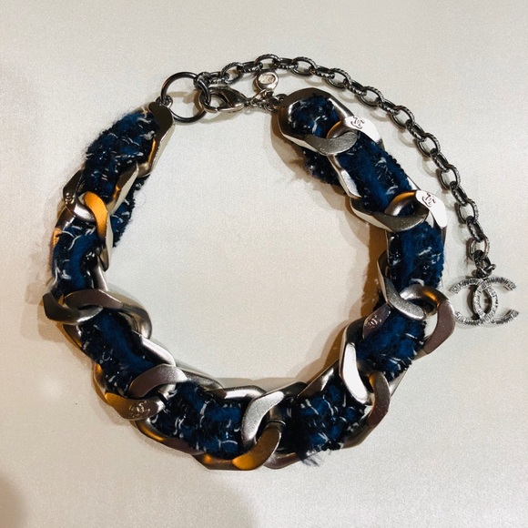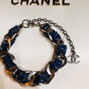 Chanel choker with interline tweed between the links in this precious metal and silver finish.