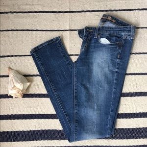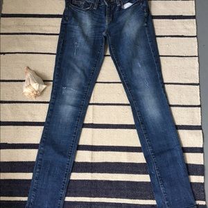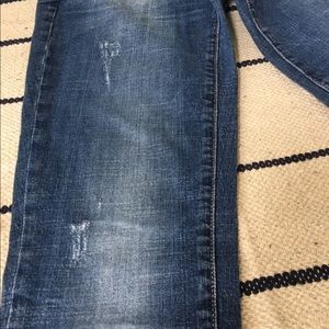 With some light wash fading and a little distressed in the jeans