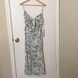 Moby is a tie maxi dress with adjustable skinny straps and a sassy knot in the middle of the bust. Side zipper closure. Unlined.