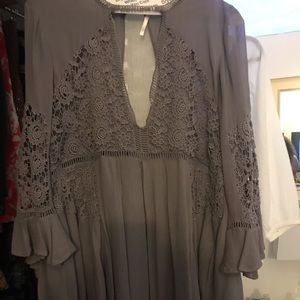 Free People grayish purple dress it’s a bit sheer a under slip might be needed. Small tear not very noticeable shown in pics.