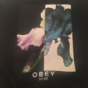 This is a never been worn size small sweatshirt by Obey. The front has a beautiful colored floral design with the words OBEY No 89 underneath it. I wished it fit me π