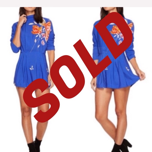 Color cobalt blue with orange floral print