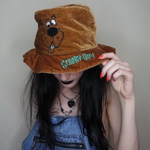 Scooby Dooby Dooo Bucket Hat ‼️ Brown velour like bucket hat with scooby doo’s face and name in teal embroidered on it! Has a velcro adjustable strap on the inside to make it tighter to fit to ur head as needed. Cartoon Network 90’s kid started pack ESSENTIAL.