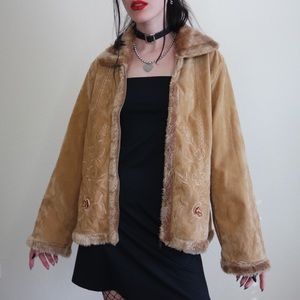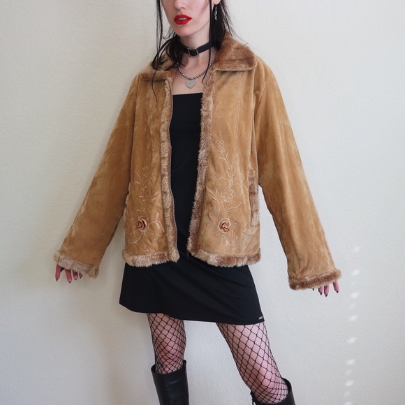 channeling a srs 90βs does 70βs moment from Almost Famous! Vintage late 90βs early 00βs soft velveteen like camel zip up coat with plush faux fur trim and collar, mega soft bod, floral embroidery and size pockets. By Effeci. Incredible condition + the detail has me π€€ Size 1X but looks amazing oversized. Desperately do not want to part with this but I know someone will do this baby JUSTICE! Bust up to 47β
