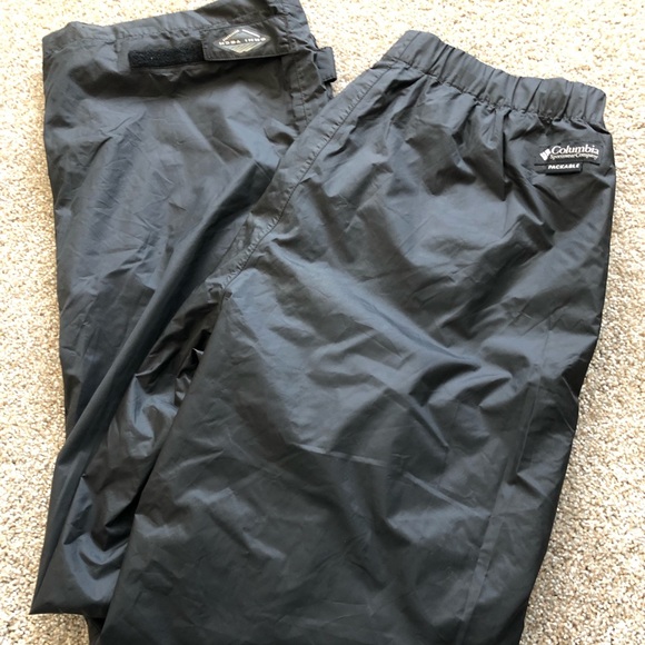MENS COLUMBIA BLACK WATERPROOF BREATHABLE PACKABLE MESH LINED RAIN PANTS SZ XL, in excellent condition. Waist 36” Inseam 33”