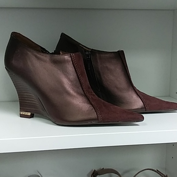 Red-brown boot heels with small zipper on the side
