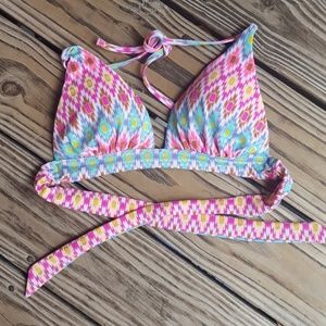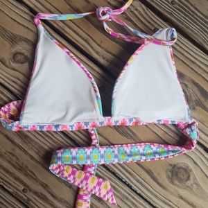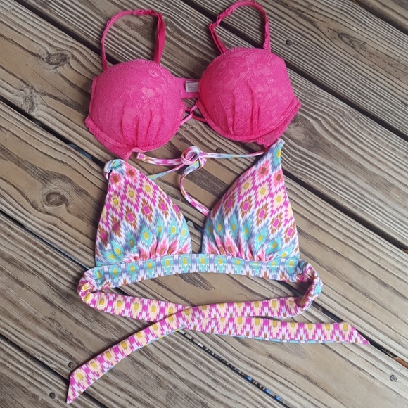 Vs both 34B Bra is the bombshell bra add 2 cup sizes and swim top have thick padding as well.