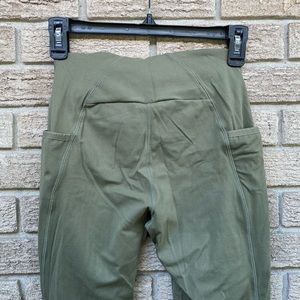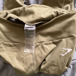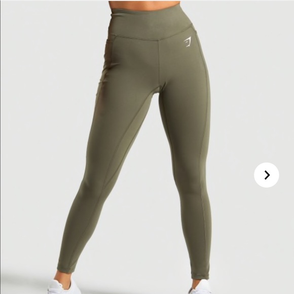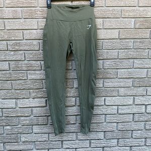 Authentic Gymshark leggings with side pockets in color khaki. Super soft and high waisted. I only wore them maybe two times so no holes or stains. First photo for true color reference only, that is not the exact style of the leggings I’m selling but very close.