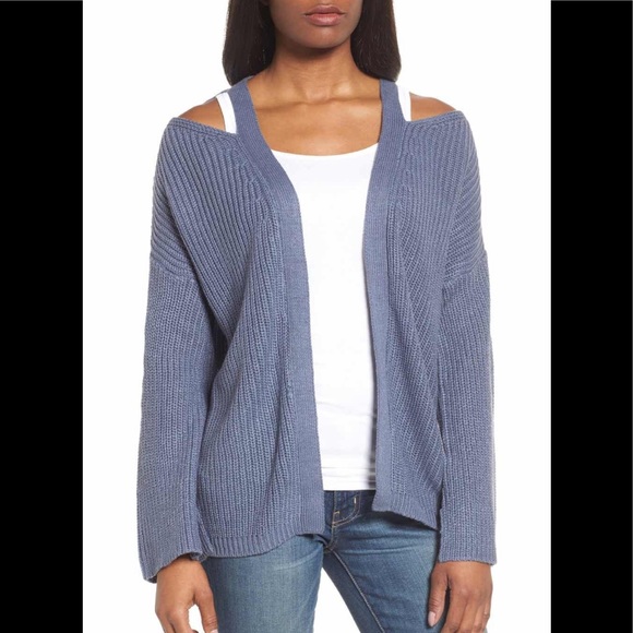 NWT!! RD Style Cold Shoulder in the front of sweater/ cardigan. Color is country blue and it has long wide sleeves. This is cute over a tank or a tee. Available (1) Small (1) X Small