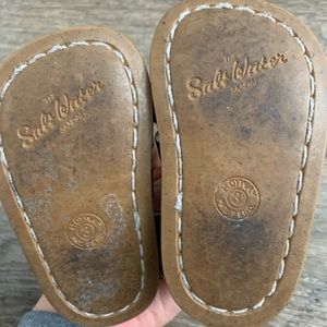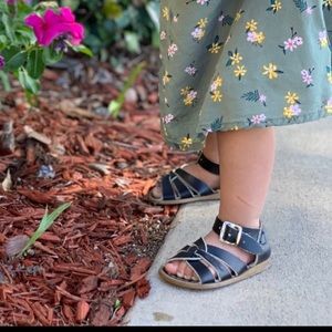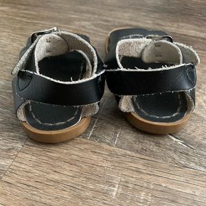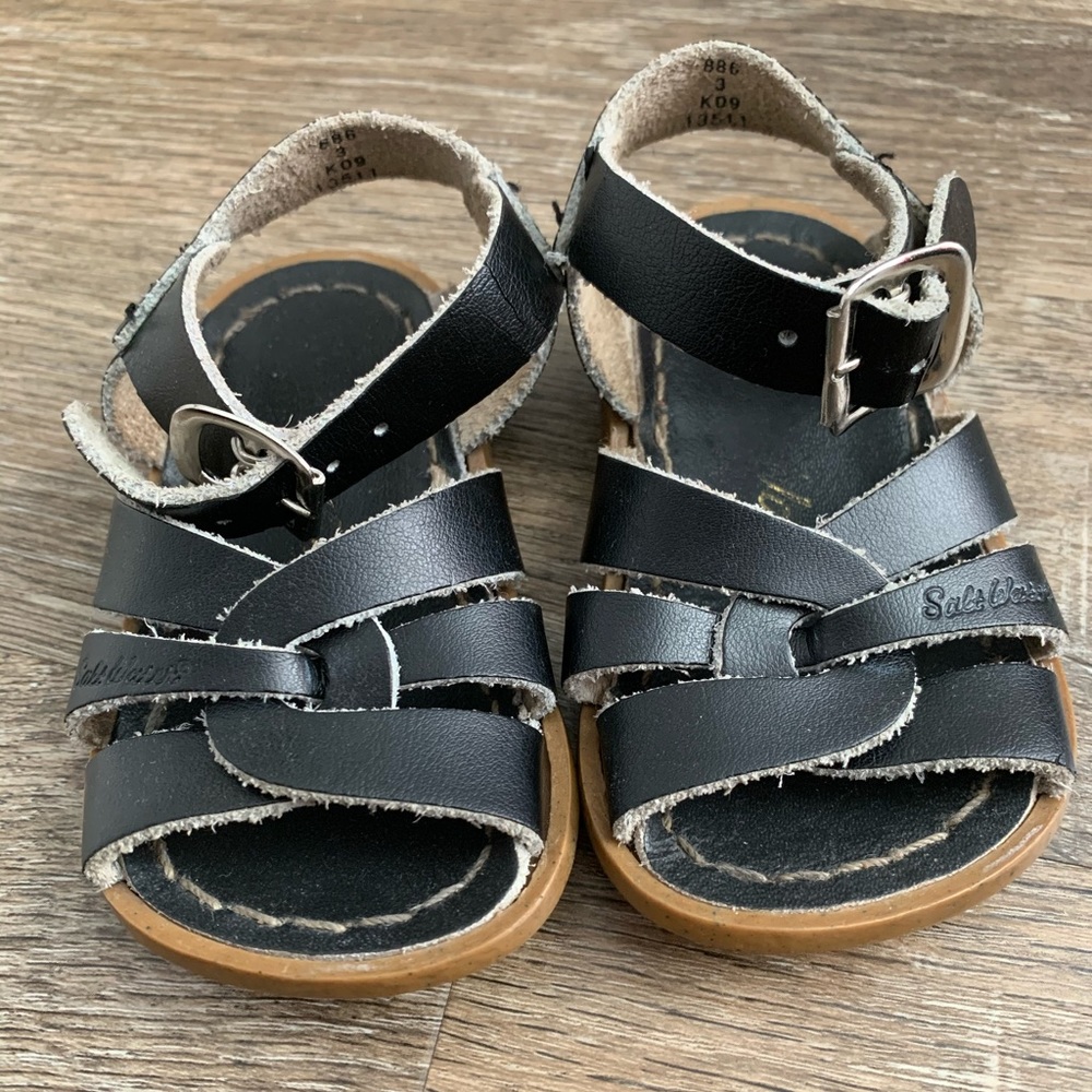 Color is black. Wore all last summer. Great everyday shoes they go with everything. Well loved but plenty of wear left. Soft leather . Size 3