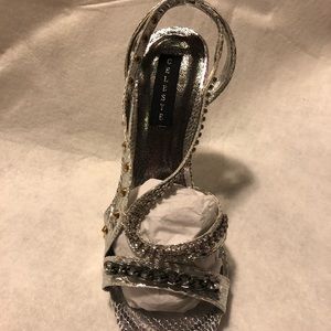 Brand new strappy silver sandals, it has different features on it , spikes , rhinestone and chain link on the straps