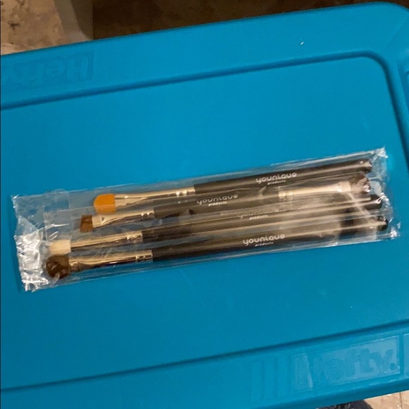 Eye brush set (4piece) brand new never used. Still in package. Outside package is opened on the side so I could get a picture of the brushes.