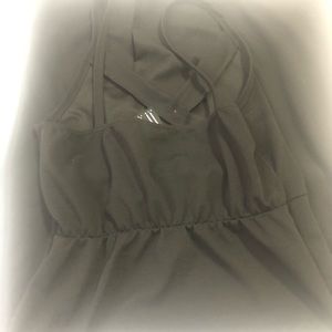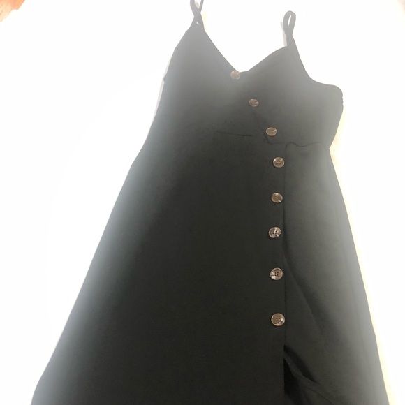 Black, spaghetti dress. Symmetrical V neck. Fashion button all the way down, split at the end. Stretch back. New with no tag.
