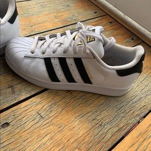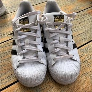 Size 4 in big kids which fits a size 6 in women . Needs new inside soles.