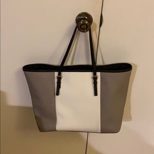 White grey and black blocked coloring. Large. Stain to inside pictured. Small stain to outside pictured.