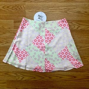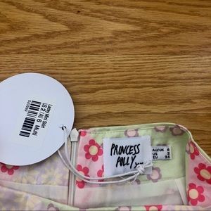 This mini skirt from Princess Polly comes new with tags. It features a pastel pink, green, yellow, and purple floral print. It also has an invisible zipper closure on the back. If you have any questions or want measurements, feel free to ask. I’m selling because it’s too small for me (I’m a true size 4). I would also be willing to trade for anything in my ISO. Sold out online.