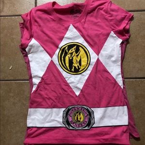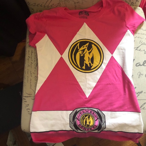 This is a pink Power Ranger shirt in Jr L. I ordered a jr XL, and the seller tried to scam me, and sent me a jr L instead. I got my money back thankfully. I will measure this upon request. As you can see in the last 2 pics, this is smaller then my woman's M Power Ranger shirt, because it is an jrs L. Open to offers. Also, if anyone has the shirt with a belt in a woman's M/L. Or an actual jrs XL, please let me know.
