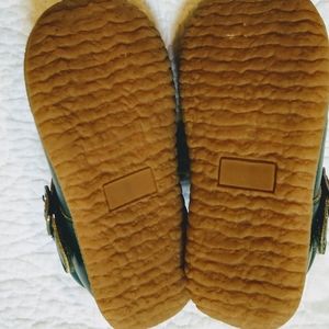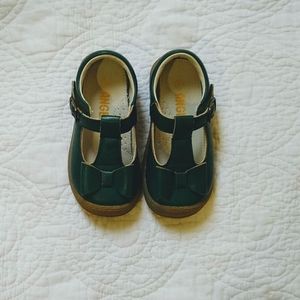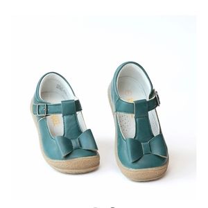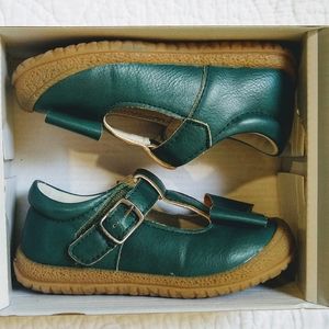 These are beautiful great quality shoes.These are new in box never worn. Dark green color with bow.