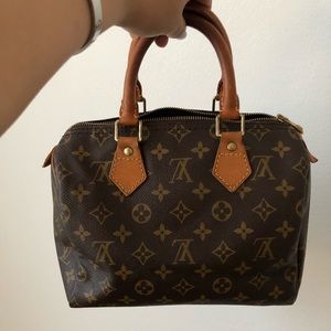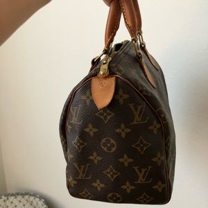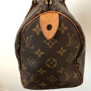 Authentic Louis Vuitton Classic speedy 25 in monogram. In great condition with some corner wear, scuffs, patina, and liquid marks.