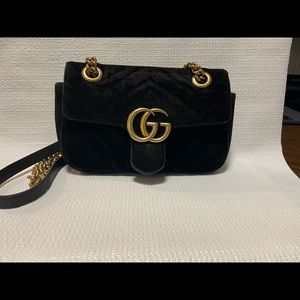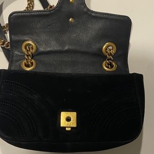 You are looking at a beautiful Gucci marmont mini velvet bag. This DOES come with a certificate of authenticity. I purchased this bag fro. The store 2nd street USA. This bag could use lots of love. I tried to clean the inside as much as possible but it could be taken in professionally. Regardless, this bag still has lots of life in it. There is wear on this bag as it is preloved. Please feel free to make me an offer :)