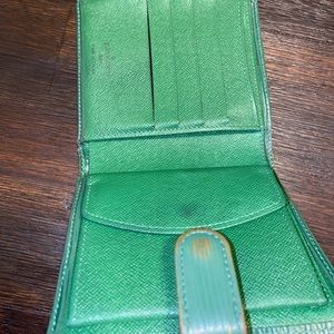 Still Available!!! 100% authentic Louis Vuitton Green Epi Leather wallet in good preowned condition, please see all pictures carefully and please ask any questions you may have. The wallet presents wear and the pictures represent the exact condition of the item, the measurements are listed on the last picture, all hardware works well. No significant major damage Also, No trades or low offers. Shipped promptly. 100% Authentic or your money back.