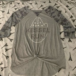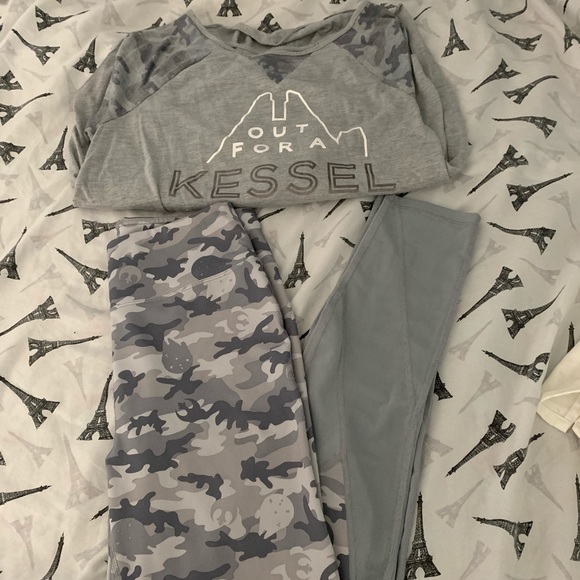 Leggings are a Medium and shirts tag is worn but fits Medium- Large.