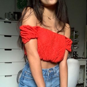 Topshop off the shoulder top Bright red // elastic on top and bottom so your titties don’t slip out