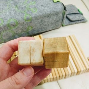 GUC magnetic tegu blocks felt, carry case and pouch. The last 2 pictures show 2 cubes. One is cracked, that's how we got it and we still played with it and the other cube has been marker marks. Everything else is great.