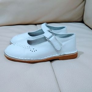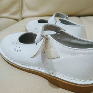 Worn a couple of times. These are beautiful and perfect for any holiday. Leather Mary Jane's. There is little bit of folds in the leather and wear in the front left shoe. The soles are alittle dirty. Everything is as pictured.