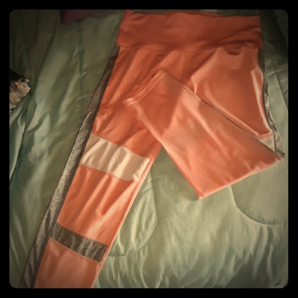 Pink with pink stripe on knees and grey stripe on lower leg also grey stripes down leg new never worn no tag size large fits small/ medium