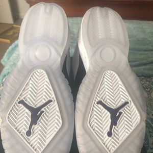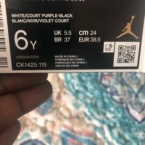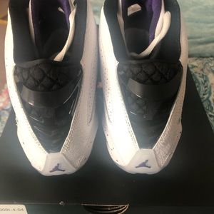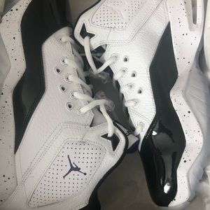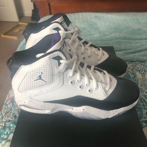 NWT and original box boys black, white and purple Jordan’s