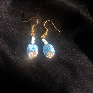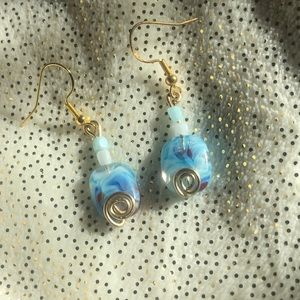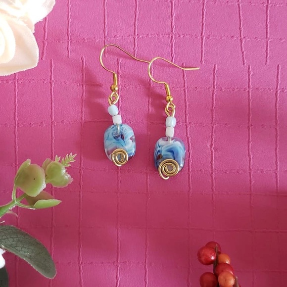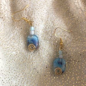 Stunning blue stone earrings with two beads on top!