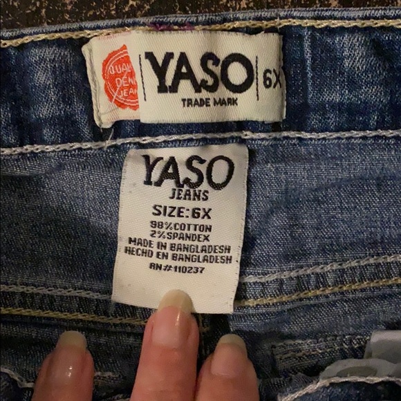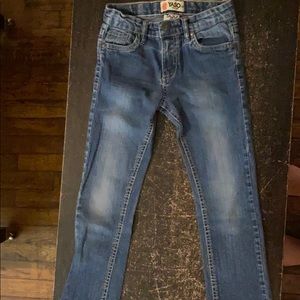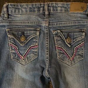 Girls jean pants size 6x. NWOT never worn only washed. They have a design on the back pockets, and adjustable waistband. Smoke free home!