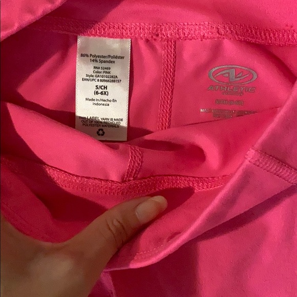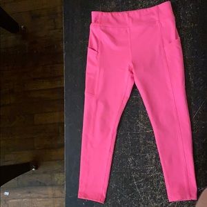 Very soft girls legging. They are a size 6-6x only worn 2x. They have pockets on either leg. They are a vibrant pink.. Smoke free home!