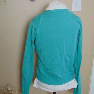 This cute cardigan will complete any outfit. It also has cute sparkly buttons! Lightly worn and in great condition. Size medium
