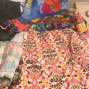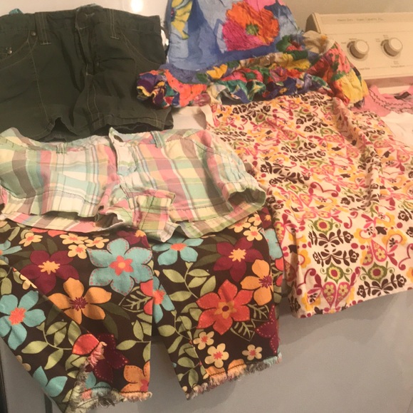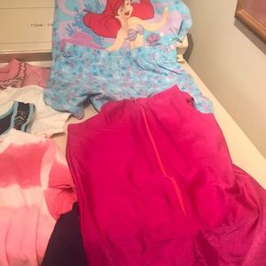 Included in this bundle are two skirts one gymnastics outfit two pairs of shorts one set of PJs one dress and four shirts all are for summer