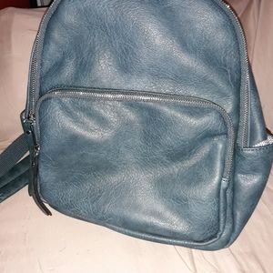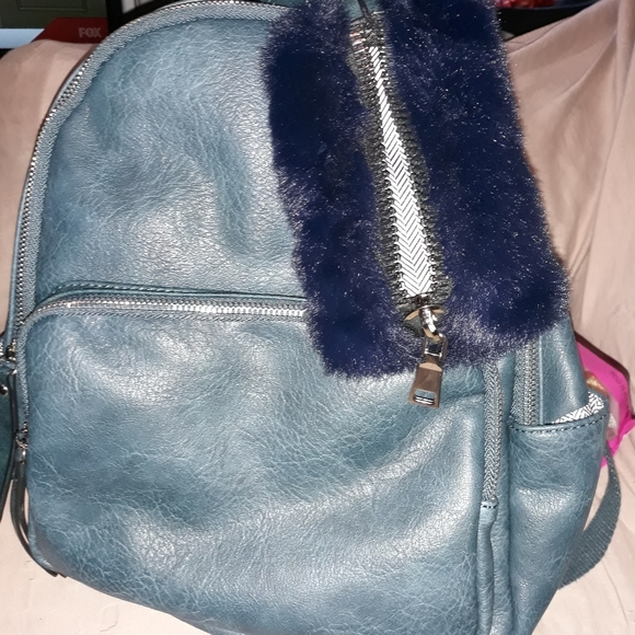New blueish green backpack comes with furry coin bag