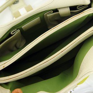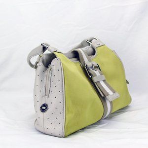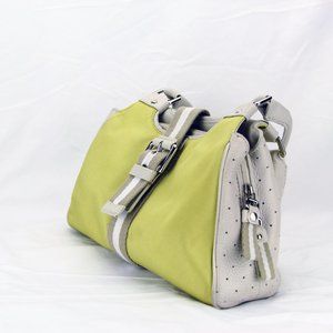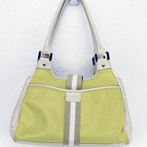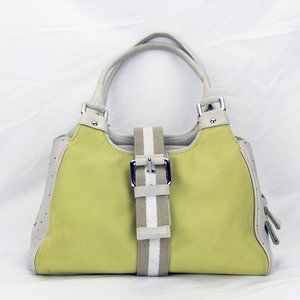 COLE HAAN Lime Green Fabric and White Leather Hand Bag. Excellent condition.**** please see photos for condition