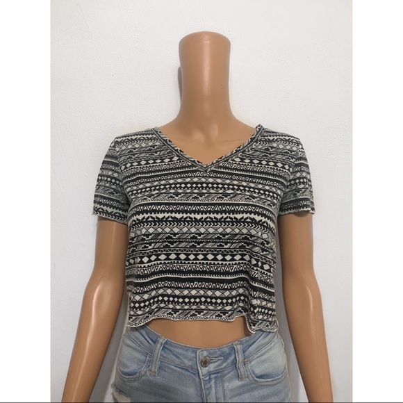 Black & White Tribal Print Crop Top V-Neck Small Lightly Worn Smoke Free Home