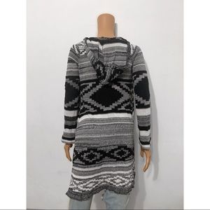 Tribal Print Long Cardigan w/ Hood Size XS 88% Cotton 12%Acrylic Lightly Worn Smoke Free Home