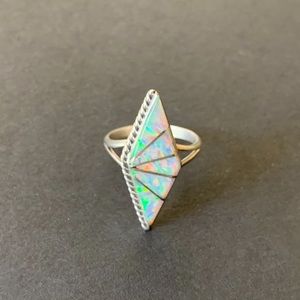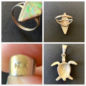 Sterling silver faux opal ring and turtle pendant