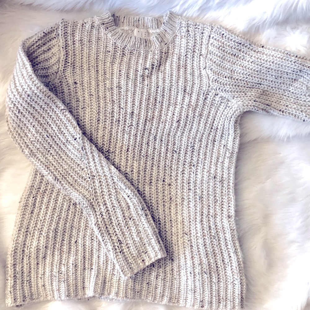Light Beige Rib Knit Sweater