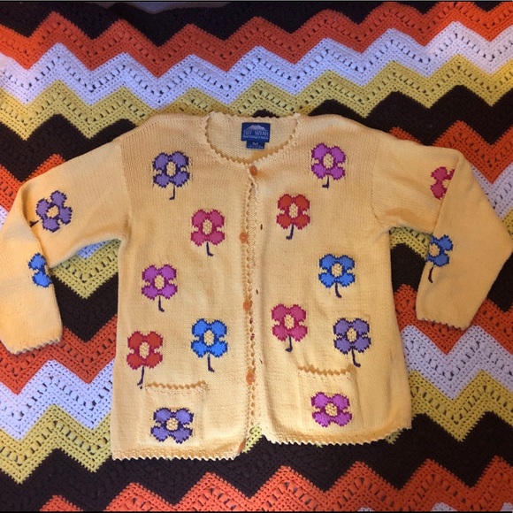 Vintage floral knit cardigan sweater