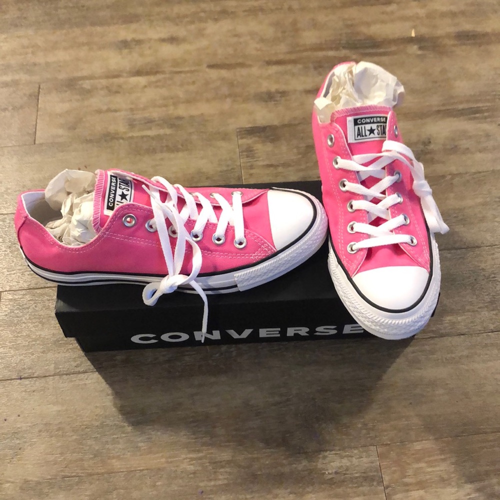 Pink and white low top Converse All stars. These shoes are Brand new!
