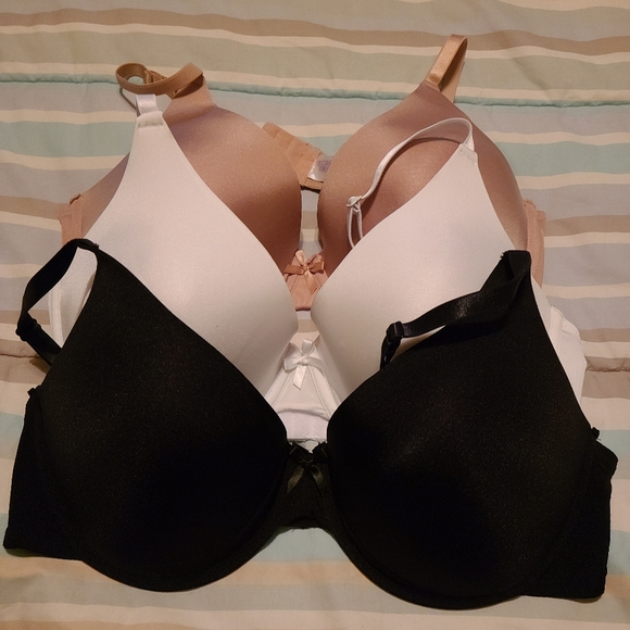 40D Bra Bundle Black, white and nude bras. They run small I'm a I'm a 40 C and they still didn't fit still to small in cup. Tried on the black Bra but couldn't wear it.