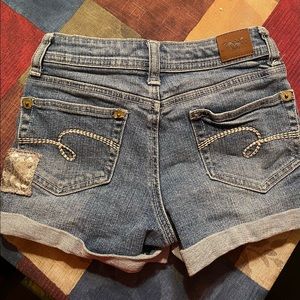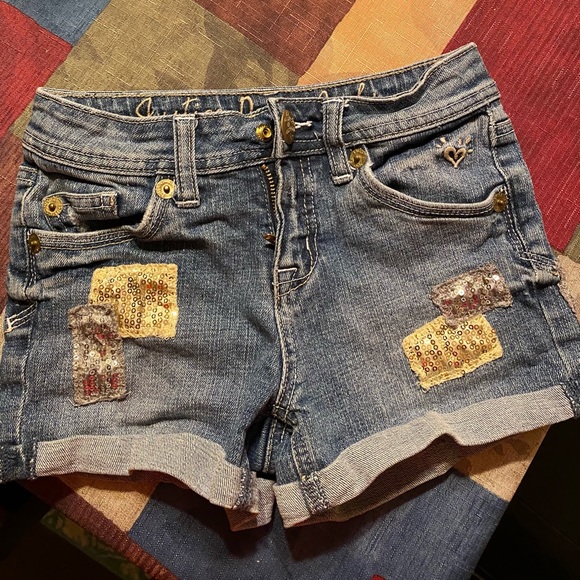 Girls denim shorts size 8R from justice. Sequin patches and super cute!