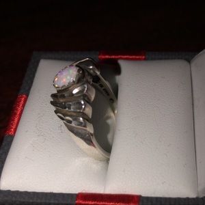 Barely any flaws size 9.5 silver and opal ring! Can size up to 11 and down to a 6 at any jeweler.