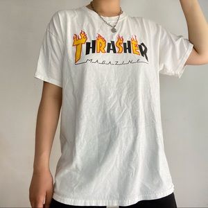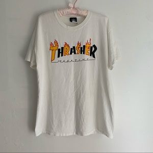 Thrasher flame magazine tee shirt. 100% cotton. Tagged men size Large, can fit women S-L. There’s some blueish marks on the logo graphic. Overall in good preloved condition.