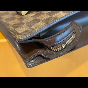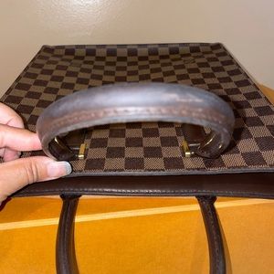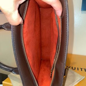 Beautiful and elegant and rare piece. Vintage 2005 made. Gently use. Has mild rubbing, interior is clean and no odors. Handle top has darken but no stickiness. Canvas has small rubbing on top but hardly noticeable. Zipper run smooth. Pls note that this is a pre owned not a brand new. Comes with dust bag only.
