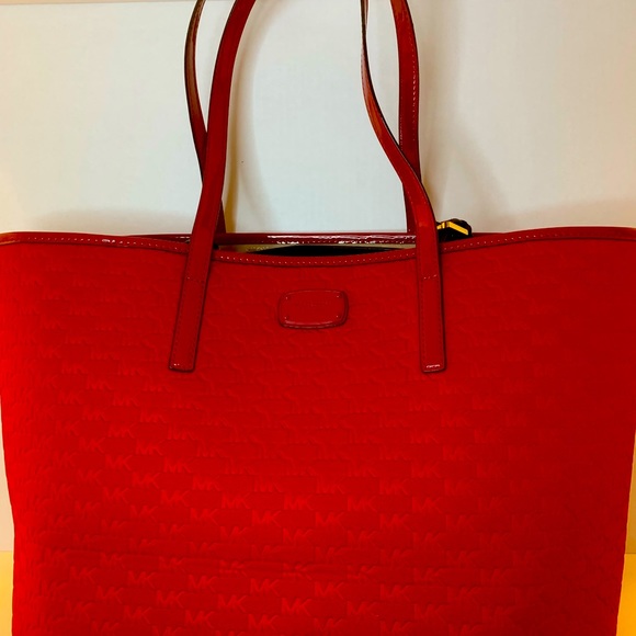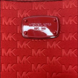 Red MK fabric shoulder purse . Never used no stains, no rips ,pet and smoke free home purchased about 3 yrs ago cost $180.00 selling for $75.00